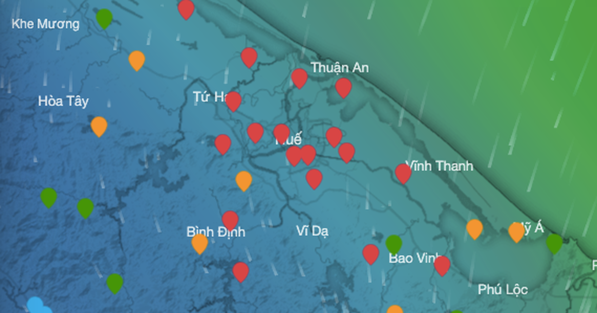 Trong đêm qua và sáng nay, từ nam Quảng Trị đến Huế xuất hiện mưa vừa, mưa to, có nơi mưa rất to. Theo số liệu đo đạc, lượng mưa tính từ 19 giờ ngày 23.10 đến 3 giờ ngày 24.10 tại trạm Hải An (Quảng Trị) là 67,2 mm, còn tại trạm Thuận An (Huế) là 176,8 mm.