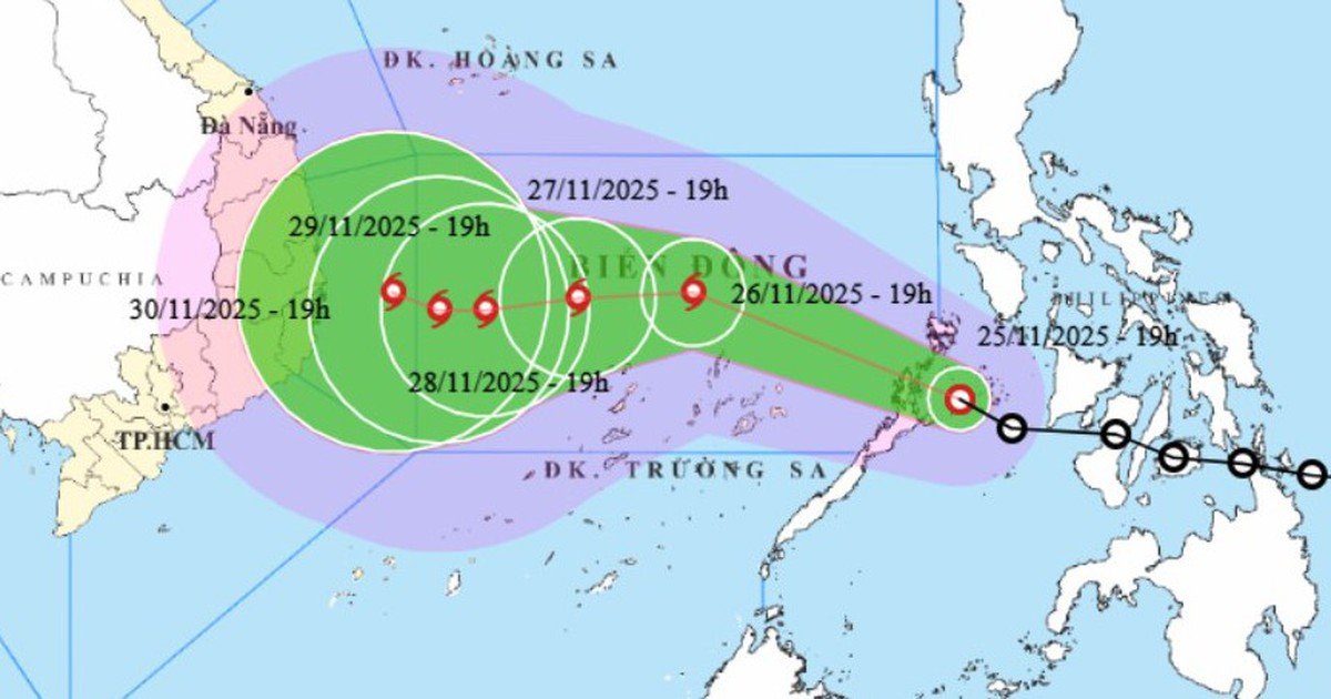 Dự báo sáng sớm ngày 26.11, bão sẽ vào Biển Đông, chính thức trở thành cơn bão số 15 của năm 2025. Tại thời điểm này, bão có khả năng đạt cấp 11 với giật cấp 13, di chuyển chủ yếu theo hướng tây. Các dự báo còn phân tán, trong đó có một số kịch bản cho rằng bão có thể đi vào khu vực Gia Lai – Lâm Đồng hoặc ảnh hưởng đến các tỉnh Bình Định, Bình Thuận cũ vào ngày 30.11 – 1.12, với cường độ có thể là bão cấp 8 hoặc áp thấp nhiệt đới.