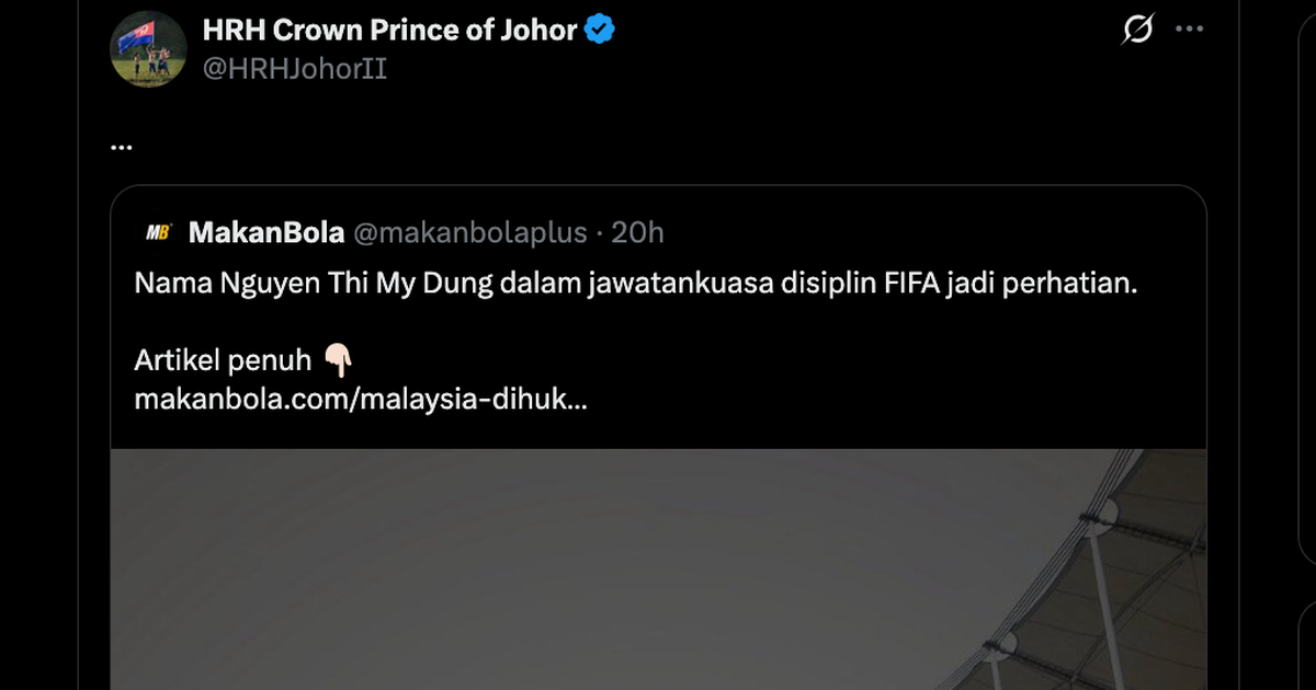 BÍ ẨN ĐẰNG SAU VĂN BÀI CỦA NHIẾP CHÍNH VƯƠNG JOHOR TRƯỚC ÁN PHẠT FIFA, MỞ RA MỐI LIÊN HỆ ĐẶC BIỆT VỚI BÀ NGUYỄN THỊ MỸ DUNG!