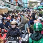 Lượng người đông đúc khiến dòng xe di chuyển chậm lại, từng bước chảy qua các tuyến đường dẫn vào chợ, tạo nên hình ảnh sôi động của ngày cuối cùng chuẩn bị đón năm mới. Các chủ cửa hàng tấp nập phục vụ khách, diễn ra trong không khí cả hưng phấn lẫn tất bật, thể hiện rõ nét nhộn nhịp ngày cuối năm tại chợ hoa TP.HCM.