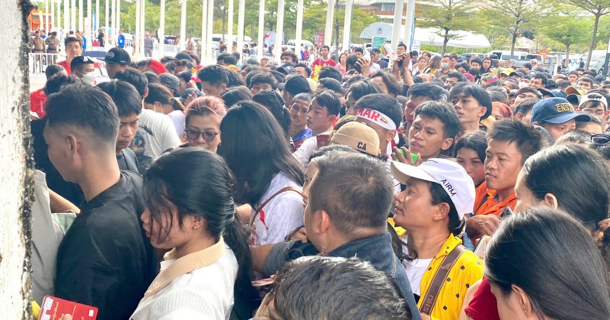Hàng nghìn cổ động viên đã chật kín các khán đài, xếp thành hàng dài chờ đợi vào xem trận đấu của Philippines và Myanmar. Những bức ảnh ghi lại khoảnh khắc lễ hội bóng đá diễn ra náo nhiệt, từ quá trình xếp hàng đến những khoảnh khắc hoàn toàn chìm đắm trong không khí của môn thể thao vua này.
