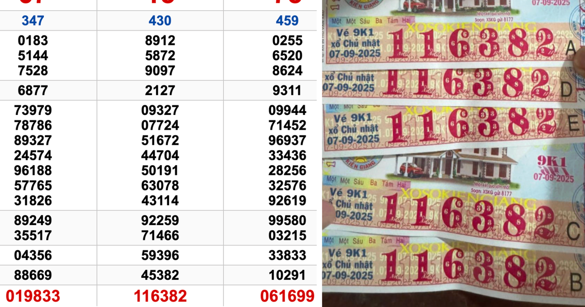 Ngày 7 tháng 9, kết quả xổ số miền Nam gây xôn xao khi xuất hiện thông tin về 5 tờ vé số trúng giải đặc biệt đài Kiên Giang, đều có dãy số 116382. Những tấm vé may mắn này đã thu hút sự chú ý lớn từ cộng đồng mạng và cư dân địa phương.