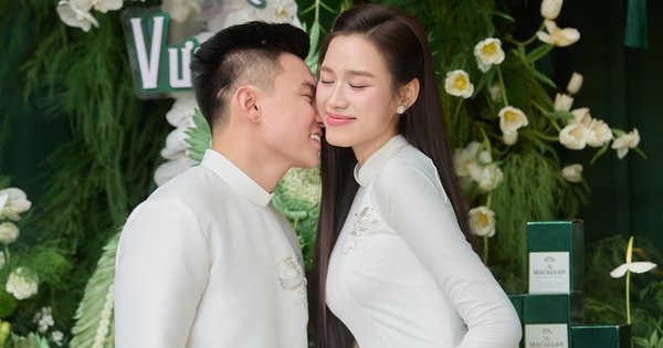 Trong buổi lễ, gia đình Viết Vương chuẩn bị 9 tráp sính lễ tỉ mỉ, sắp đặt theo phong cách truyền thống với tông màu trắng xanh thể hiện sự thuần khiết và sung túc. Mỗi tráp đều mang ý nghĩa cầu chúc cho cuộc sống hôn nhân viên mãn, hạnh phúc. Dù không công khai chi tiết vật chất, nhưng “sính lễ” của họ chính là sự trân trọng, tình cảm và niềm tin đặt vào đôi trẻ.