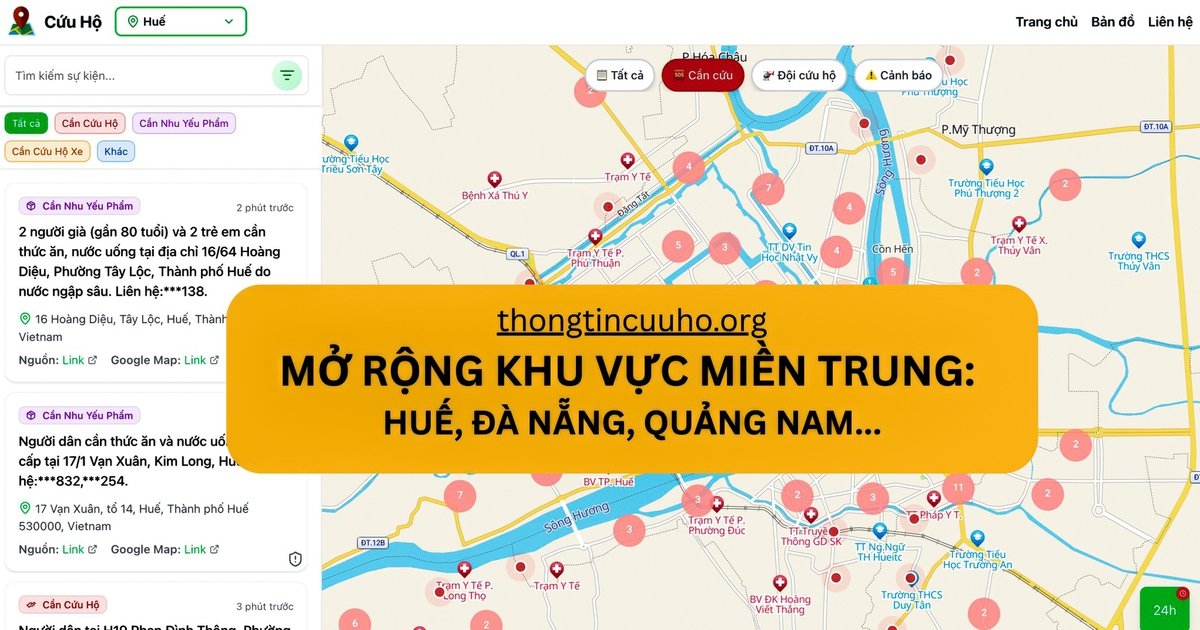 Ngay sau những hình ảnh đẫm nước, nhóm bạn trẻ Nguyễn Thị Mai Anh, Từ Tất Huân và Đặng Thành Long đã mở rộng dự án bản đồ cứu hộ dựa trên dữ liệu từ mạng xã hội, nhằm hỗ trợ lực lượng cứu hộ tiếp cận những vị trí cần giúp đỡ một cách chính xác và nhanh chóng. Ứng dụng này, có tên gọi thongtincuuho.org, thu thập và hiển thị điểm cứu trợ, cập nhật liên tục theo thời gian thực từ những người dân đăng báo cáo trực tiếp trên các nền tảng mạng xã hội như Facebook, fanpage hoặc nhóm cộng đồng.