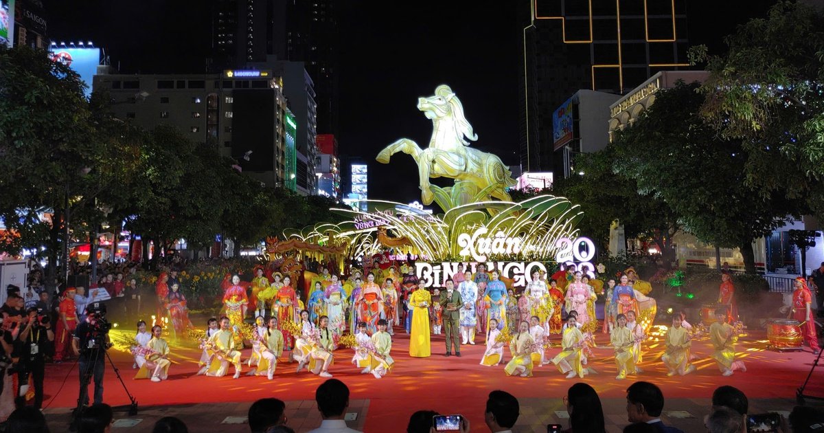 Lễ khai mạc tối 28 Tết đã diễn ra hoành tráng với sự xuất hiện của linh vật Ngựa rực sáng trên sân khấu, là biểu tượng chính của mùa xuân Bính Ngọ. Chương trình nghệ thuật với hàng trăm nghệ sĩ, diễn viên và thiếu nhi đã tạo nên một bức tranh xuân đa sắc, thể hiện rõ khát vọng vươn lên và đoàn kết của thành phố trong hành trình trở thành siêu đô thị quốc tế.