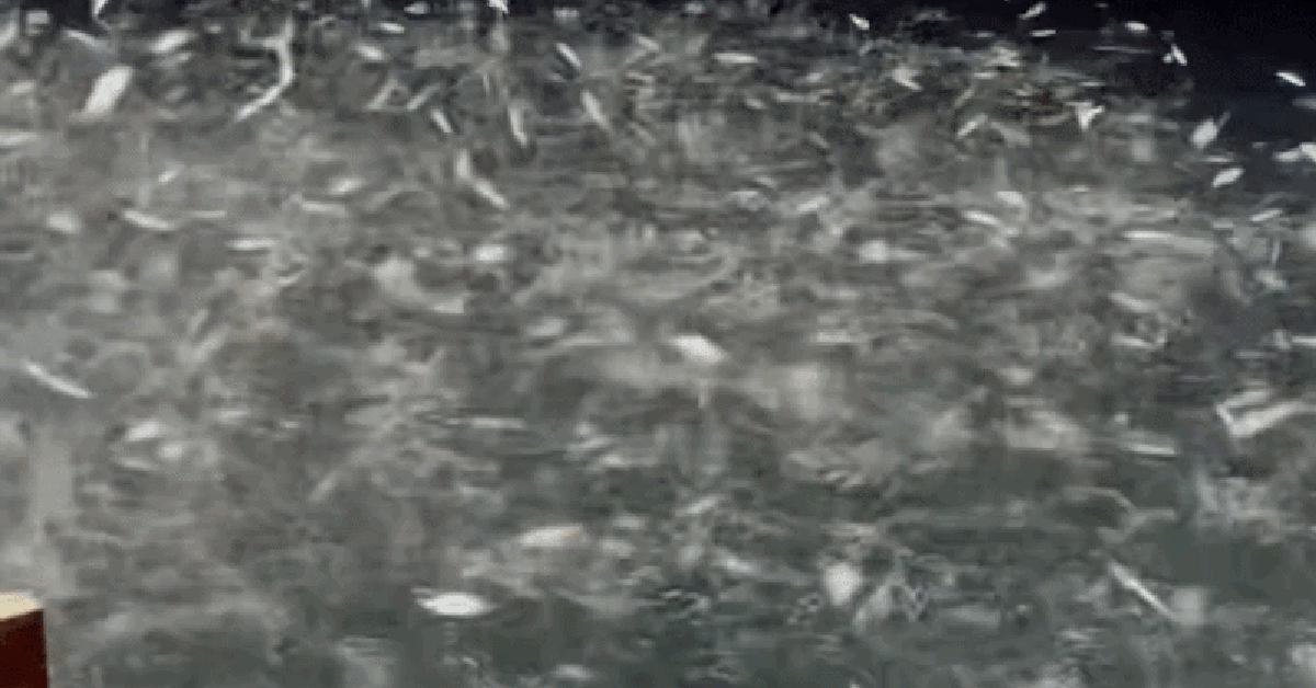 Trong đoạn video, ban đầu chỉ vài con cá bật lên, nhưng không lâu sau, cả đàn cá phóng lên cùng nhau, tạo ra âm thanh rì rào mạnh mẽ ngay bên cạnh chiếc thuyền. Người đàn ông cầm máy quay rõ ràng không khỏi bất ngờ trước lần đầu tiên chứng kiến hiện tượng này ở cự ly gần.