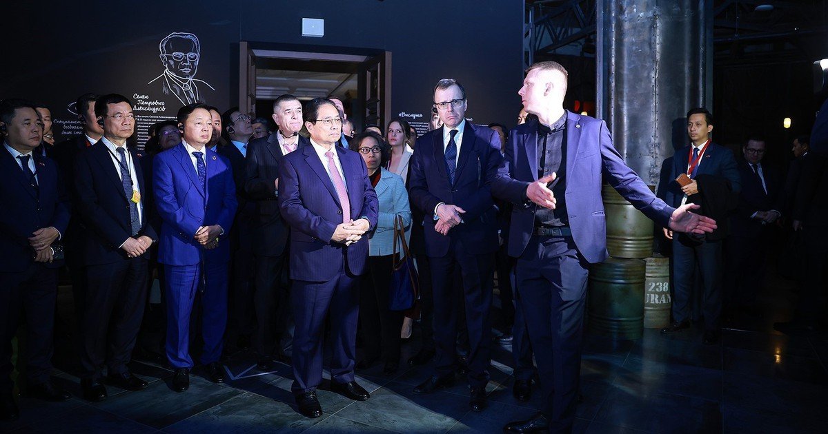 Tại các triển lãm “Dự án nguyên tử Liên Xô” và “Thời đại của những người tiên phong”, Thủ tướng đã được giới thiệu về những khám phá đầu tiên và quan trọng nhất trong lĩnh vực nguyên tử. Ông đặc biệt ấn tượng với quá trình nghiên cứu, phát triển công nghệ nguyên tử, các yếu tố cốt lõi của khoa học, nguồn lực con người và cơ sở vật chất góp phần phát triển năng lượng nguyên tử vì mục đích hòa bình. Thủ tướng cũng bày tỏ ngưỡng mộ về thành tựu của Liên Xô và Nga trong lĩnh vực này và nhấn mạnh các dự án hợp tác giữa Việt Nam và Nga trong nghiên cứu, phát triển năng lượng hạt nhân, tiêu biểu nhất là việc ký kết thỏa thuận xây dựng nhà máy điện hạt nhân tại Việt Nam nhằm đảm bảo an ninh năng lượng quốc gia.