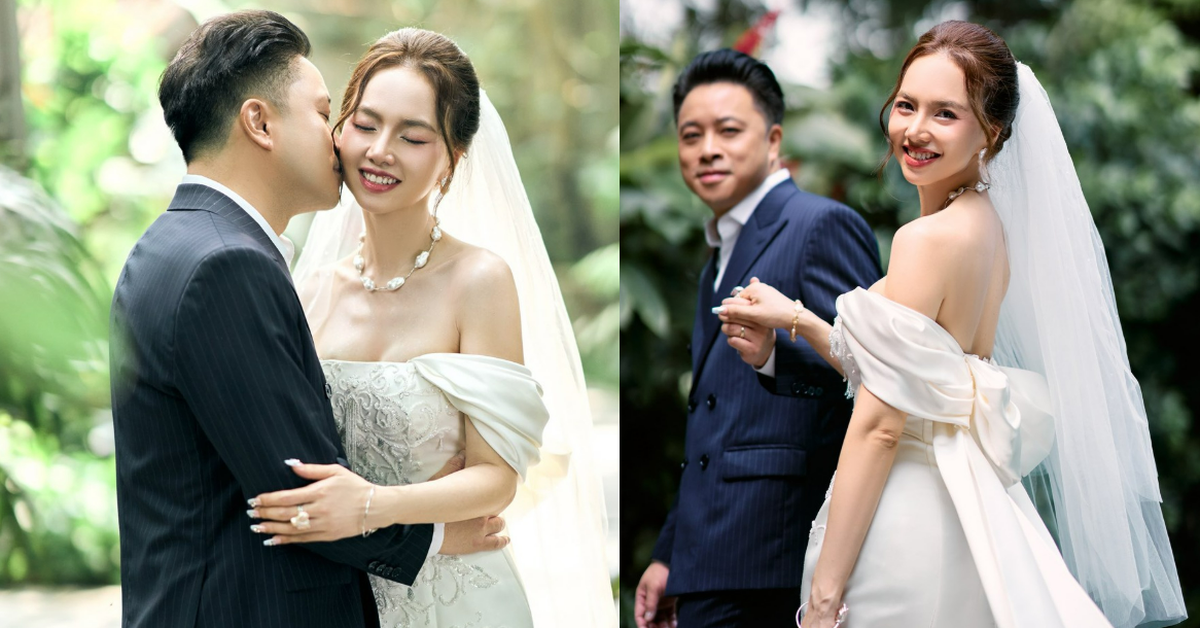 Trên trang cá nhân, Đinh Ngọc Diệp đăng tải những hình ảnh trong bộ trang phục cô dâu – chú rể, bên cạnh hai cậu con trai, mang đậm dấu ấn kỷ niệm quan trọng của cuộc đời. Trong phần chia sẻ đầy chân thành, cô tâm sự về hành trình vượt qua thử thách cùng ông xã: “Khi gặp Victor Vũ, tôi luôn mong muốn trở nên tốt hơn, trưởng thành hơn. Suốt 10 năm qua, nỗ lực của tôi không phải để chứng minh với ai, mà chỉ mong chồng thấy được sự tiến bộ của bản thân.”