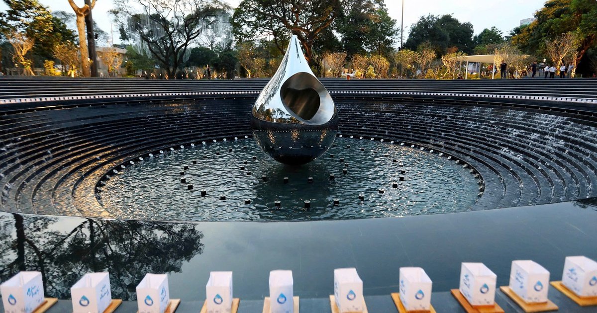 Tượng đài Giọt nước – biểu tượng của ký ức đau thương và sẻ chia – được trang bị nhiều chi tiết phản chiếu, tạo cảm giác hòa quyện giữa con người và tác phẩm. Khi đêm xuống, 360 ngọn nến cùng hàng nghìn đèn pha tỏa sáng, tạo không khí trang nghiêm và thiêng liêng, như một lễ tưởng niệm giữa lòng thành phố.