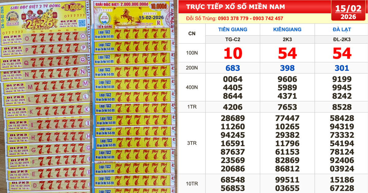 Theo kết quả xổ số miền Nam ngày 15 tháng 2, một điểm đặc biệt khiến nhiều người chơi chú ý chính là sự trùng hợp bất ngờ khi cả hai đài Kiên Giang và Đà Lạt cùng xuất hiện dãy số trúng giải tám là 54. Sự kiện này khiến cộng đồng yêu xổ số thích thú và bàn tán xôn xao về khả năng may mắn của những con số này.
