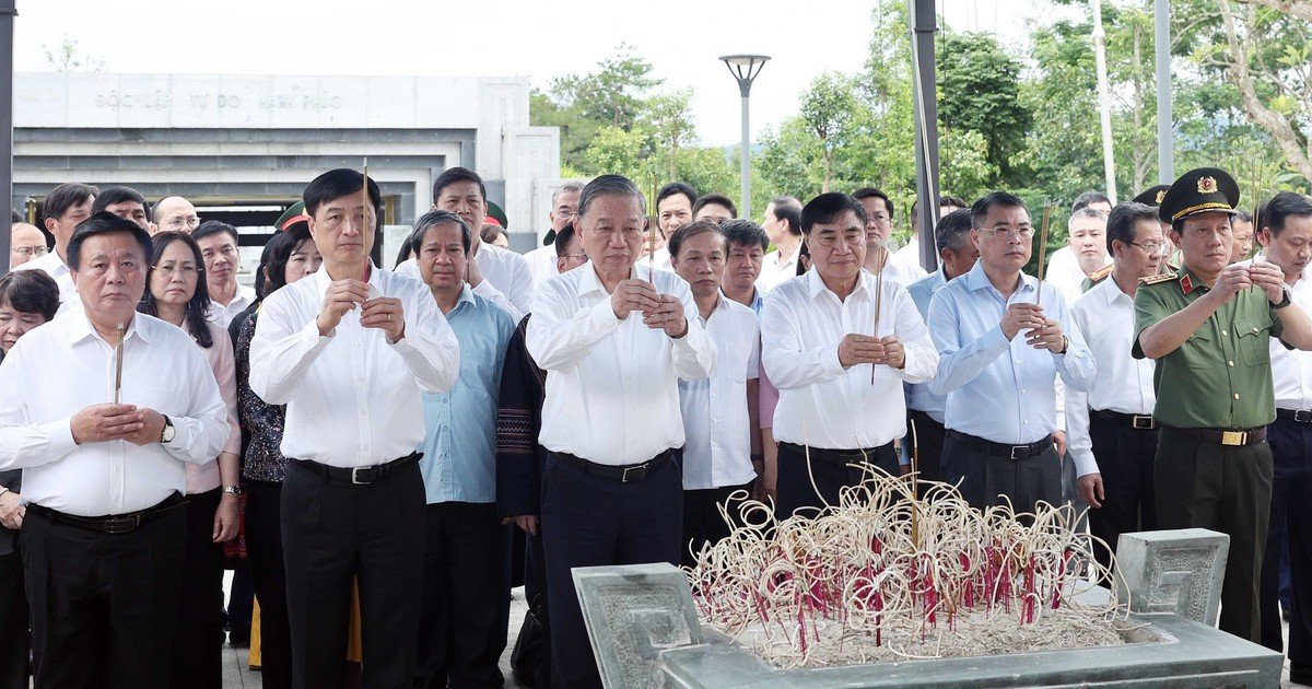 Tổng Bí thư Tô Lâm đã thành kính dâng hoa, dâng hương tại Đền thờ liệt sĩ, thể hiện lòng biết ơn sâu sắc đối với những anh hùng đã hy sinh vì Tổ quốc. Trong không khí linh thiêng, ông cùng đoàn công tác đã tưởng nhớ Chủ tịch Hồ Chí Minh – Người anh hùng giải phóng dân tộc Việt Nam, nhà văn hóa kiệt xuất, và Đại tướng Võ Nguyên Giáp – Người anh cả của Quân đội nhân dân Việt Nam.