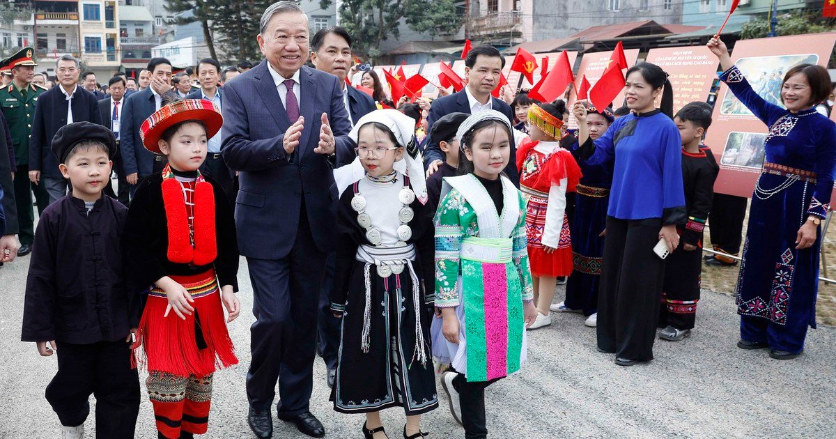 Trong dịp này, Tổng Bí thư còn có buổi gặp mặt, trò chuyện với nhân dân các dân tộc Cao Bằng tại sân vận động tỉnh, nơi Bác Hồ từng nói chuyện cách đây hơn 60 năm. Ông khẳng định, sự hy sinh, đoàn kết của đồng bào các dân tộc nơi đây là nền móng của “thế trận lòng dân”, là sức mạnh giúp đất nước vượt qua mọi thử thách, giữ vững ổn định và phát triển.